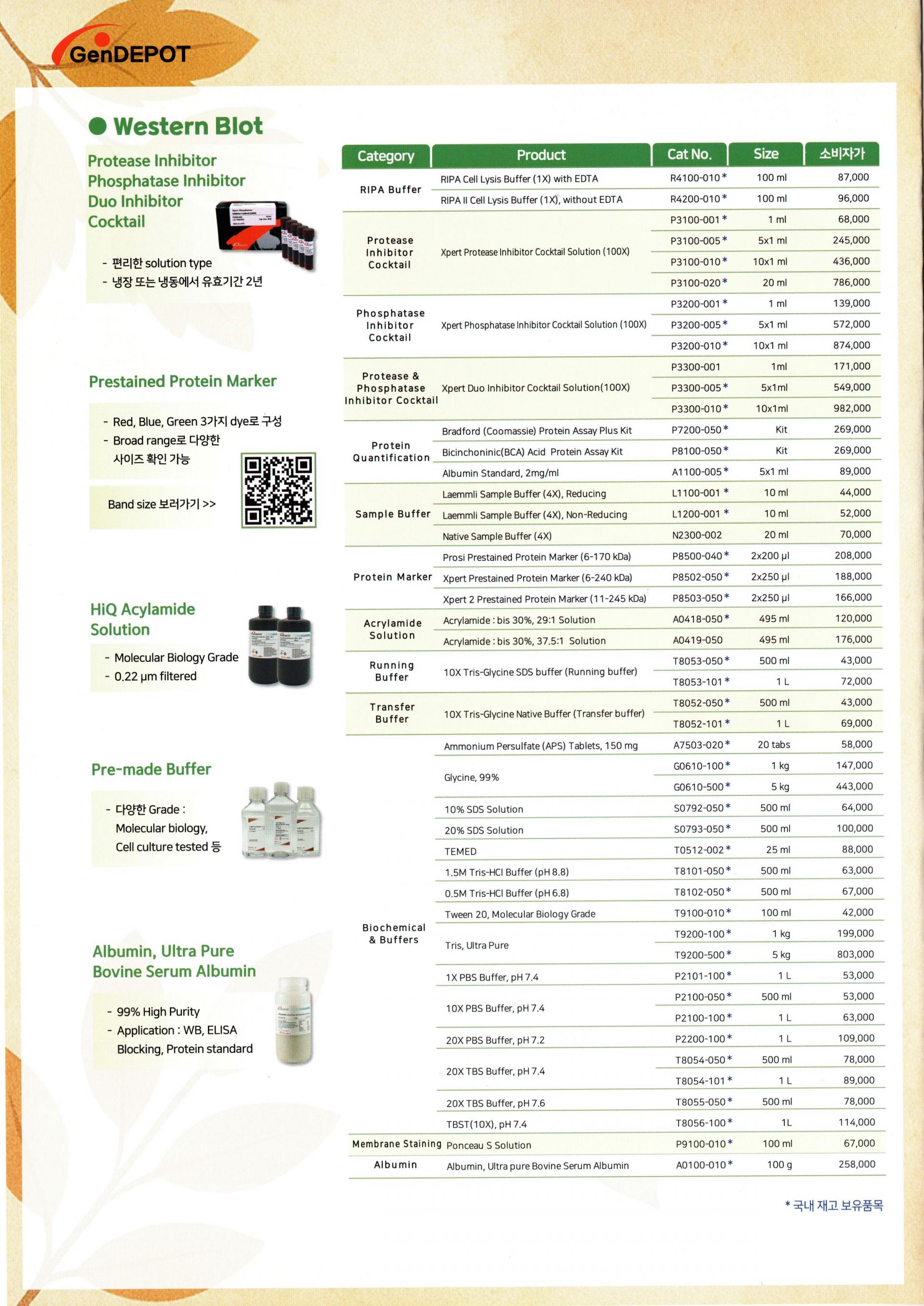 | Category | Product | Cat No. | Size |