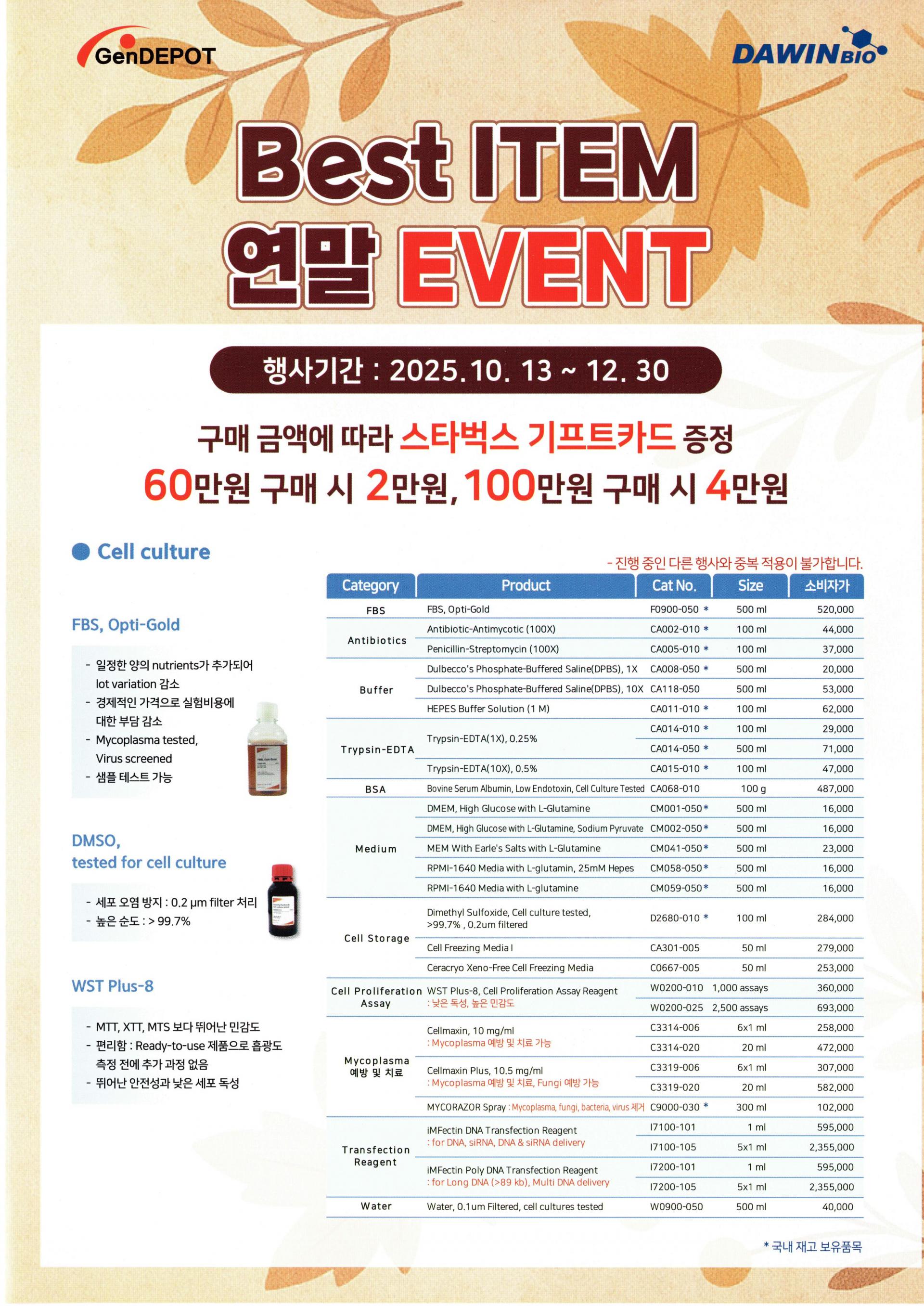 * 행사 내용: 베스트 아이템 소비자가 기준 60만원 이상 구매시 2만원, 100만원 구매시 4만원 스타벅스 기프트카드 제공