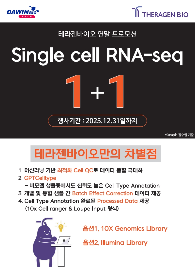 - 행사 내용 : Single cell RNA-seq 서비스 의뢰 시 1+1 적용